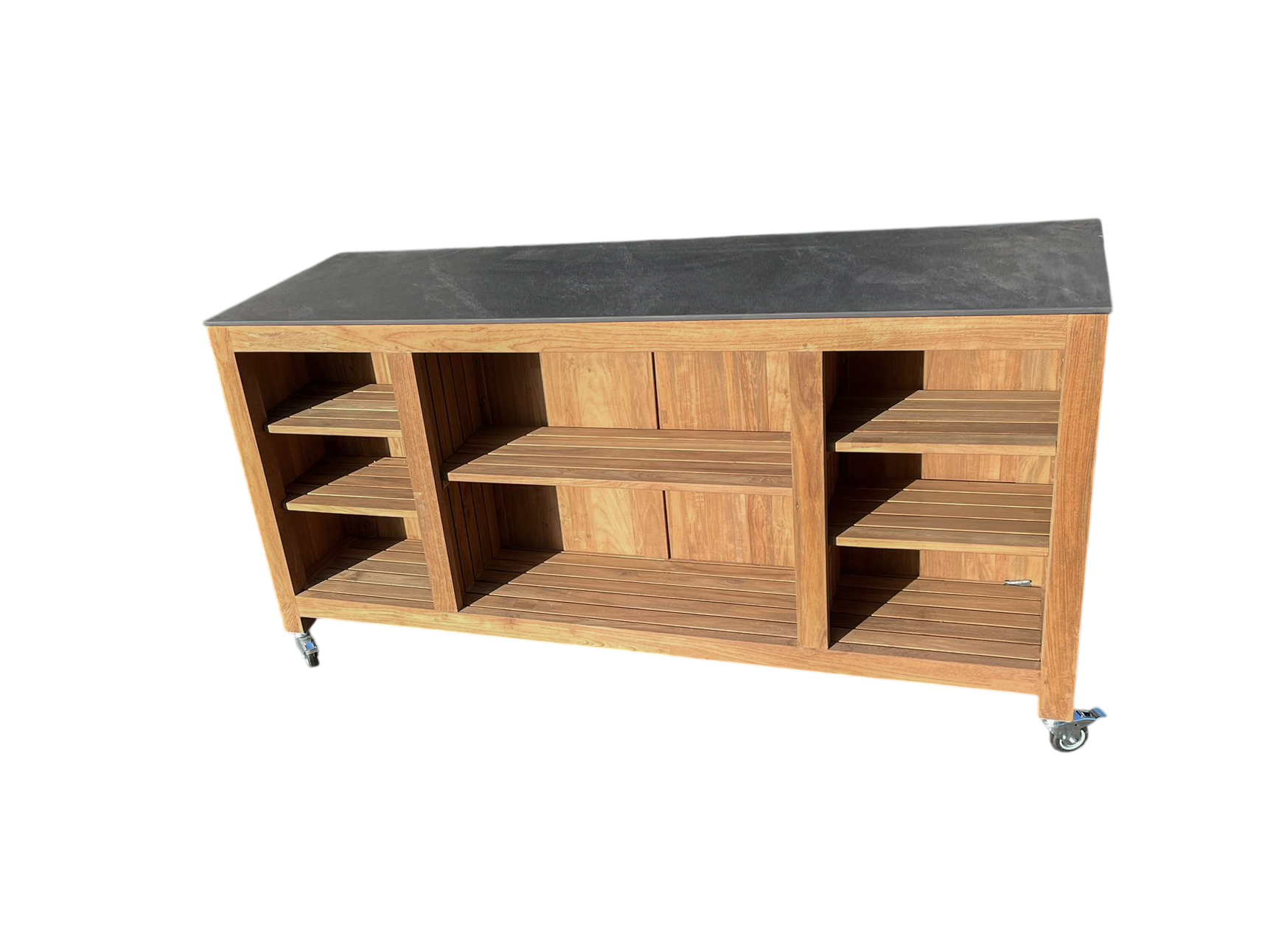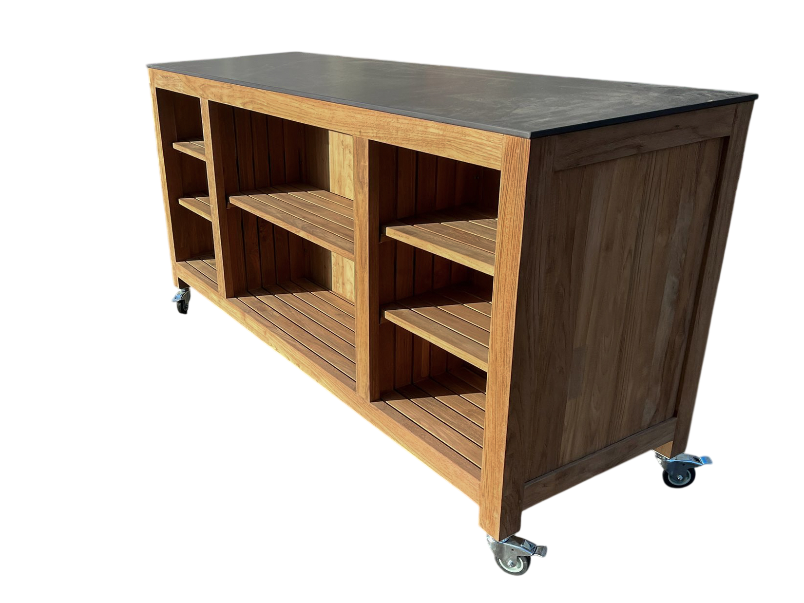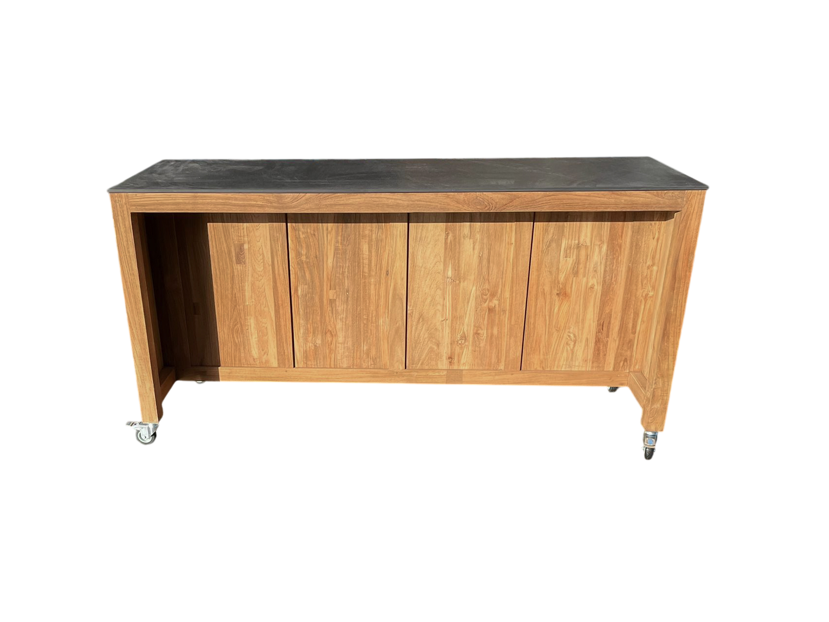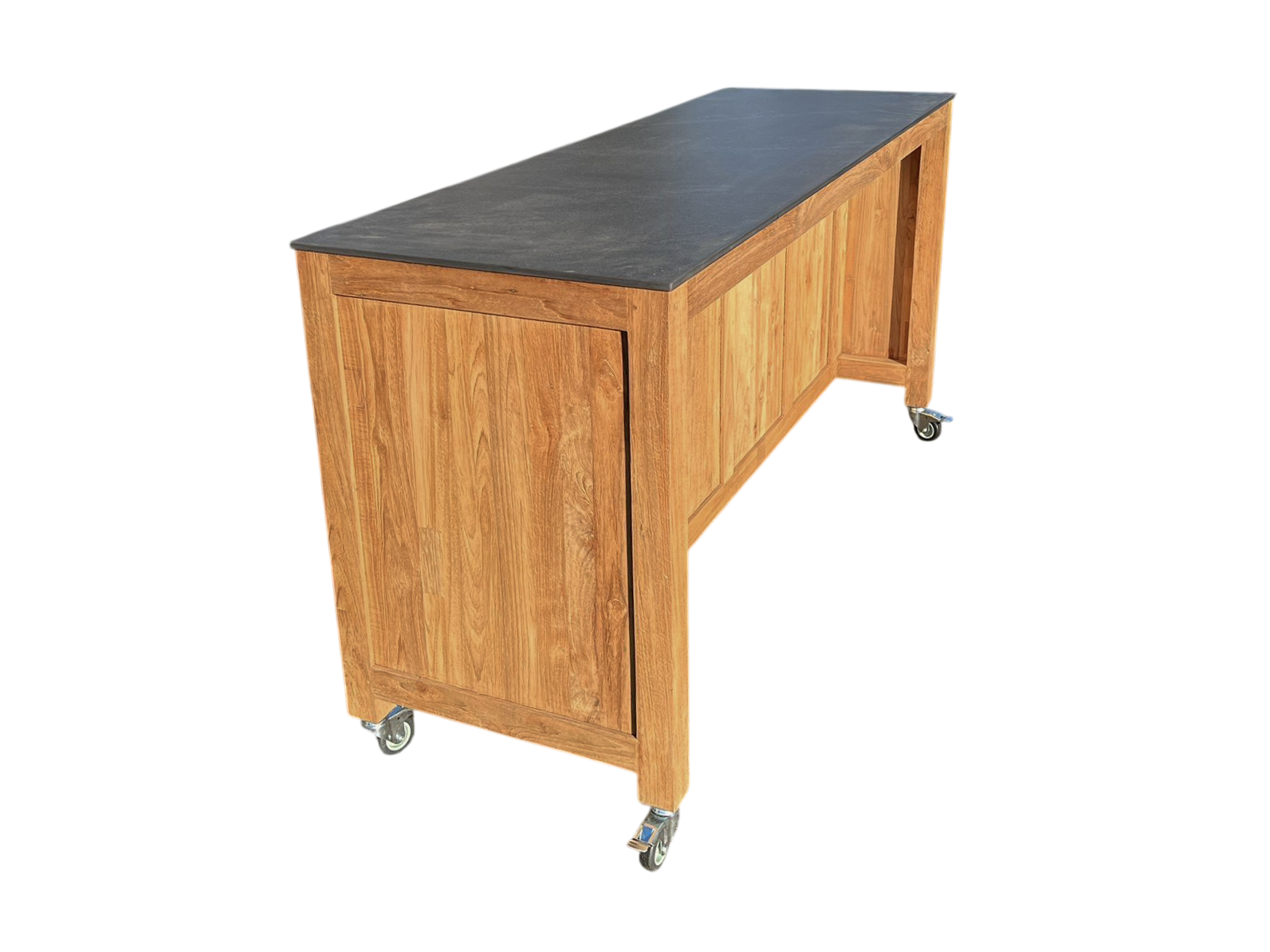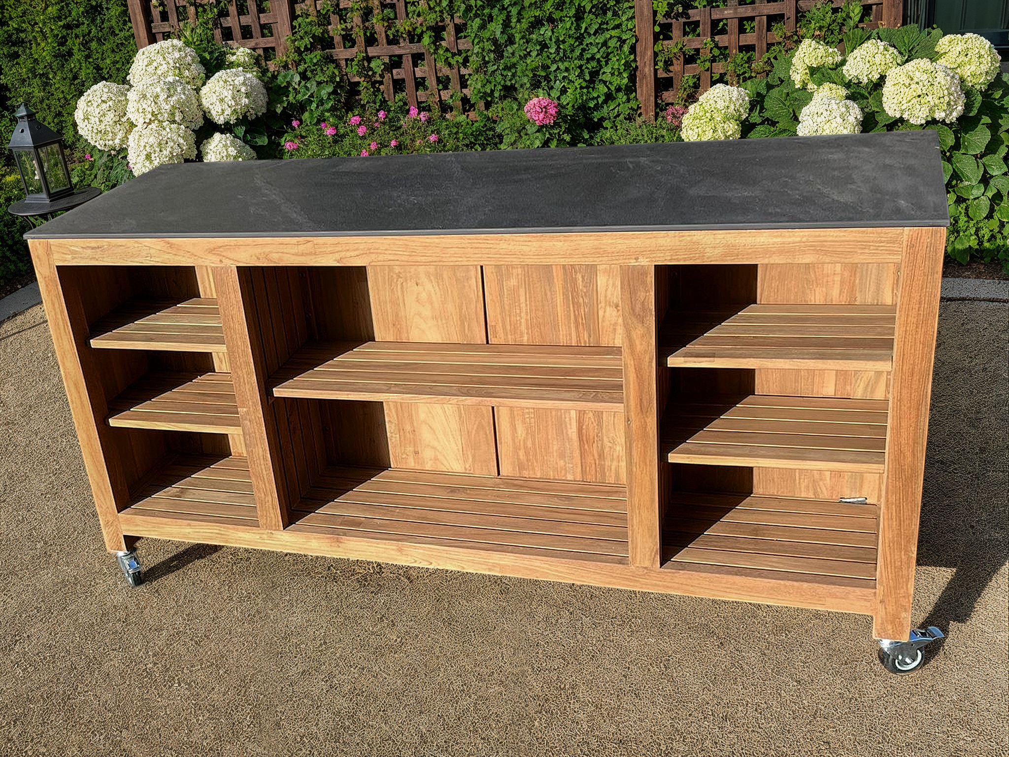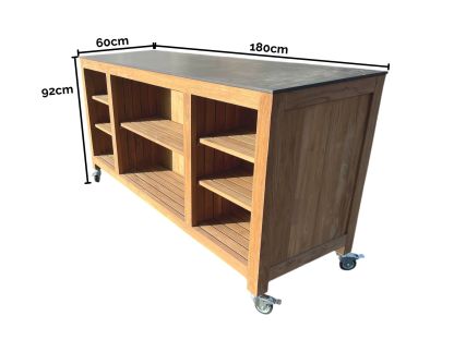 Mounted on smooth-rolling castors, the island can be repositioned effortlessly to suit your space, whether you’re hosting a gathering or adjusting your layout. Once in place, it becomes a functional and welcoming hub for outdoor cooking and socialising.