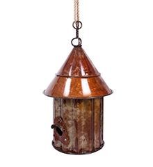 Hand finished and cut from recycled shipping drums and other scrap metals by skilled crafts people over in Vietnam this unique bird house also has an eco-friendly appeal to it.