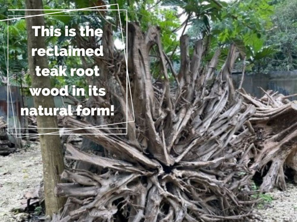 The reclaimed teak roots are specially selected and cut by hand to produce a very rustic piece that is both highly decorative and functional at the same time.