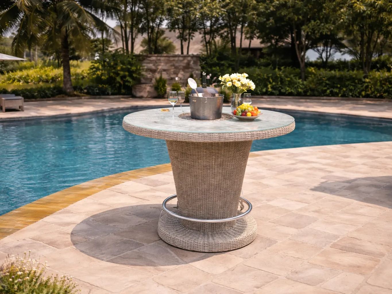 The stand out feature of the Luxor Round Bar is the built in ice box in the centre of the table top and the all-rattan curvy design that compliments any outdoor space.