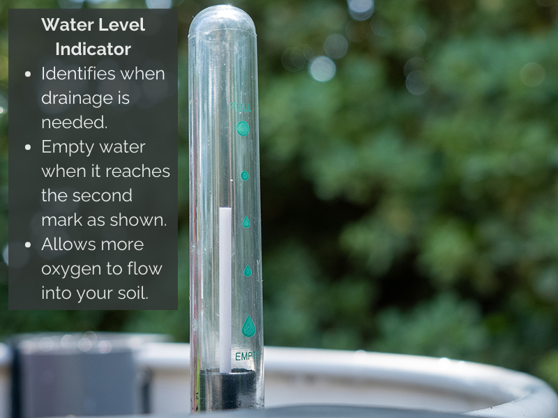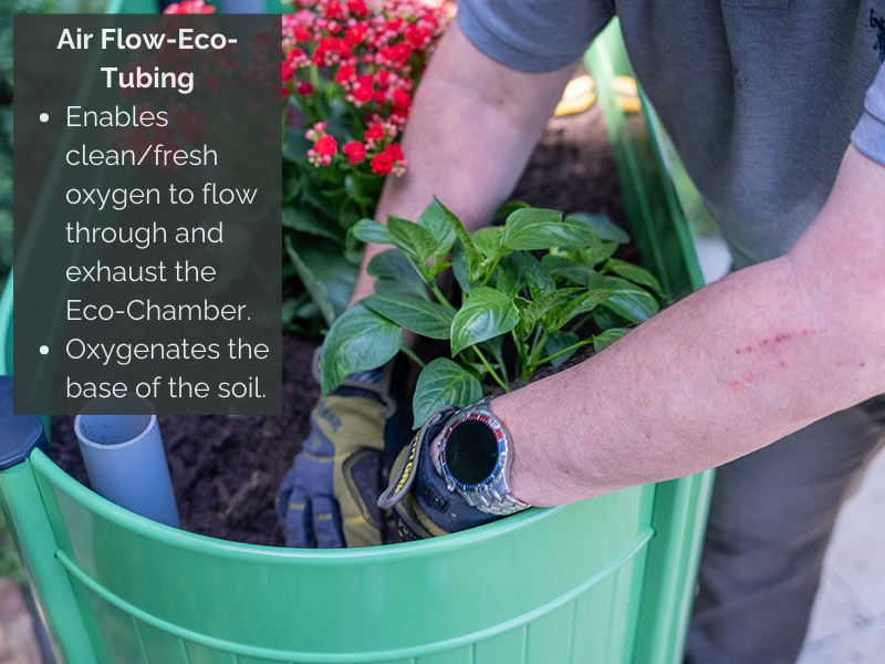 - air flow eco-tubing allows oxygen to flow through and exhaust out the Eco-Chamber, oxygenating the base of the soil