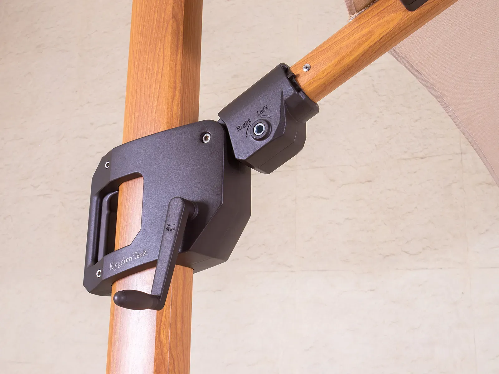 The Pisa’s wood-effect aluminum pole and ribs offer the natural beauty of timber with the strength and low maintenance of metal. This sophisticated finish pairs beautifully with teak, rattan, and modern outdoor furniture alike.