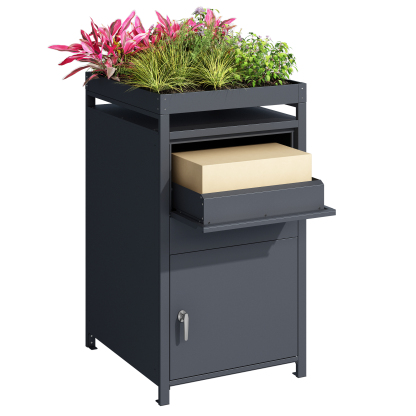 Our Anthracite Galvanized Steel Parcel Box with Planter offers a secure and stylish solution for receiving and storing packages, while also bringing a touch of color to your outdoor area.